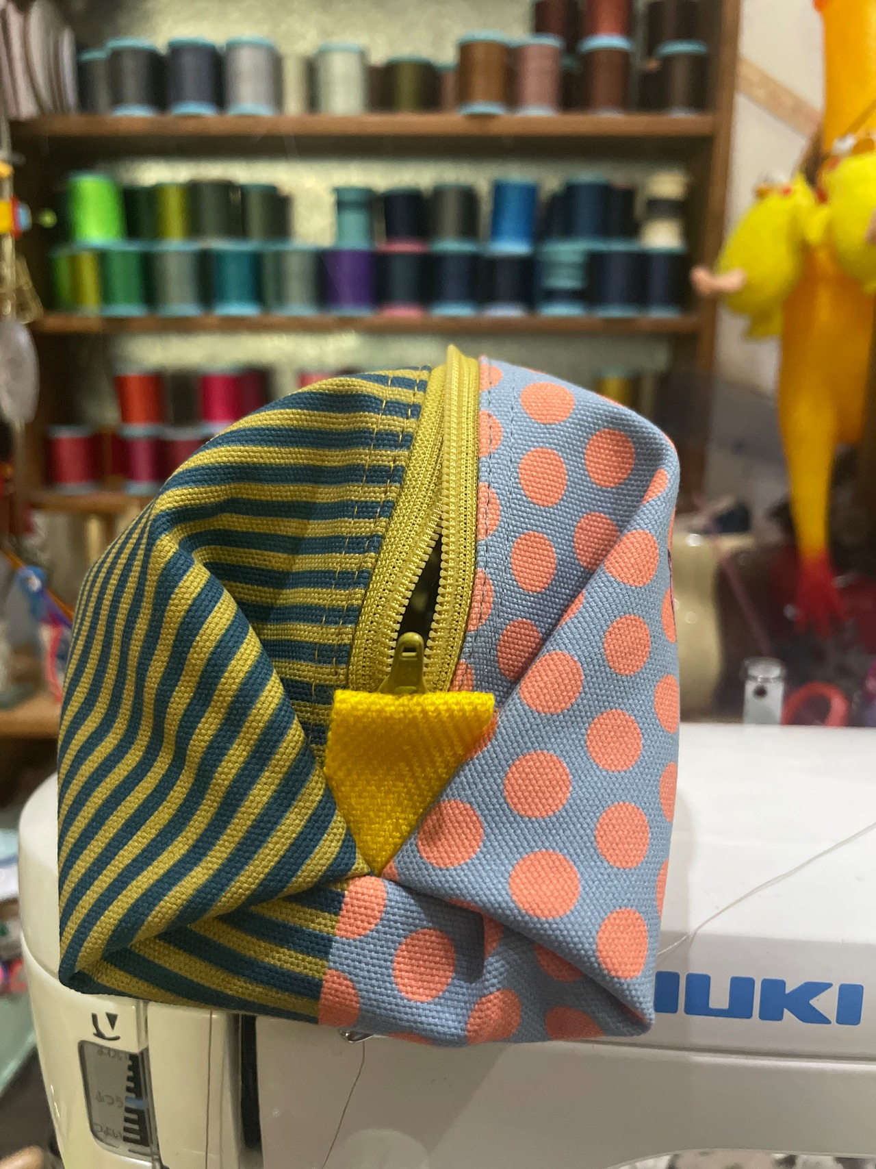 コットン生地にマチをつけ、